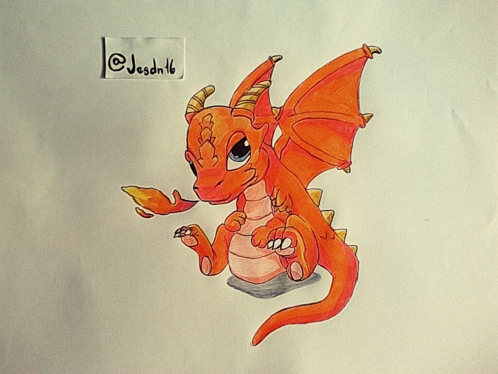 One day not so long ago lived a small dragon named Cedric. His scales were a shiny orange and he was the smallest dragon in his family. His home was not like the other dragons. Most dragons lived on the tops of the mountains. His mother and father chose a cave beside a lake of lava.